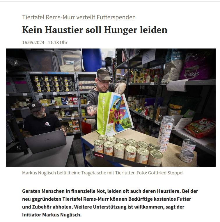 Liebe Tiertafelfreunde, heute haben wir ein größeres Newsupdate für Euch: Neue Runde: WirWunder Spendenmarathon: Aktuelles rund um die Futterausgabe: Die Futterausgabe in Schorndorf und Backnang findet bis auf Weiteres jeweils von 17:00 bis 18:00 Uhr statt. Wir arbeiten an weiteren Ausgabestandorten. Dies ist immer davon abhängig, ob wir vor Ort ausreichend Teammitglieder haben, und ob entsprechend Bedarf besteht.Im Frühjahr 2025 werden wir entsprechende erweiterte Ausgabestellen ankündigen. Aktuelle Termine Futterausgabe und Anmeldung Runder Tisch: Donnerstag, 21. November – 19:00 UhrAWO Backnang – Aspacher Str. 32 Sie haben Fragen, Ideen oder wissen nicht so genau was die Tiertafel ist, oder ob Sie…